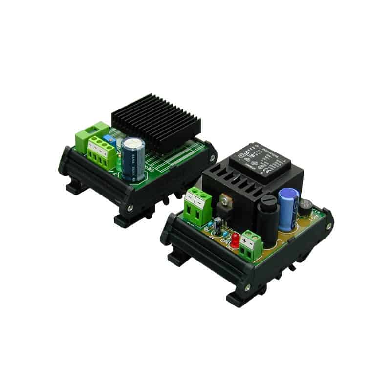 Series of linear stabilised suppliers, developed for mounting on DIN rail. Technical features suitable for different market requirements thanks to the wide output voltage range regulation. Special attention has been paid to the correct price / performance ratio. The line includes single-phase versions with direct input from line (115/ 230 Vac), and versions with low voltage input (26Vac).