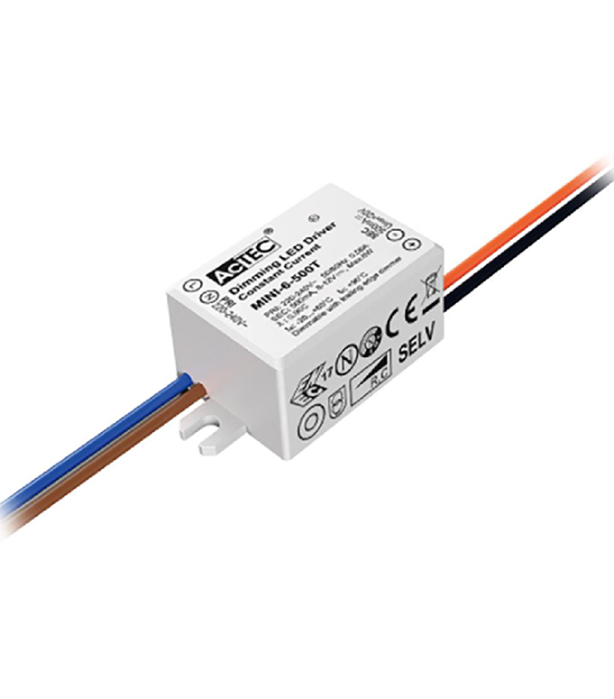 Alimentatori Serie MINI-T caratterizzati dalla funzione dimming a taglio di fase trailing edge e dal grado di protezione IP20.