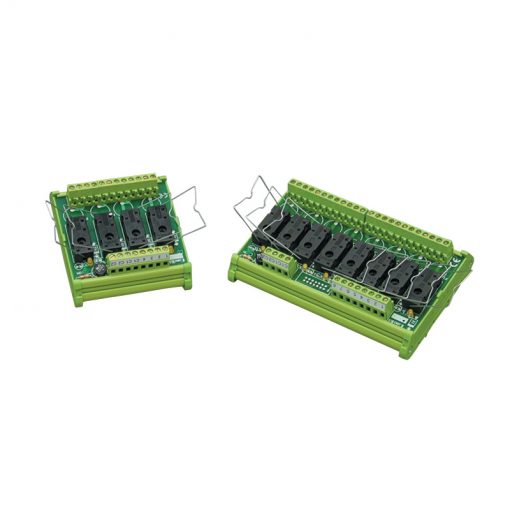 Moduli porta relè a 4, 8 e 16 vie equipaggiabili sia con relè elettromeccanici